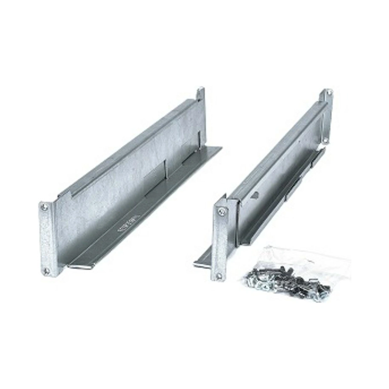 Kit trilho para fixação de nobreak (UPS) em gabintes/bastidores rack 19". Composto por 02 x Trilhos deslizantes, metálicos, com parafusos e furações compatíveis para aplicações em Racks padrão 19".