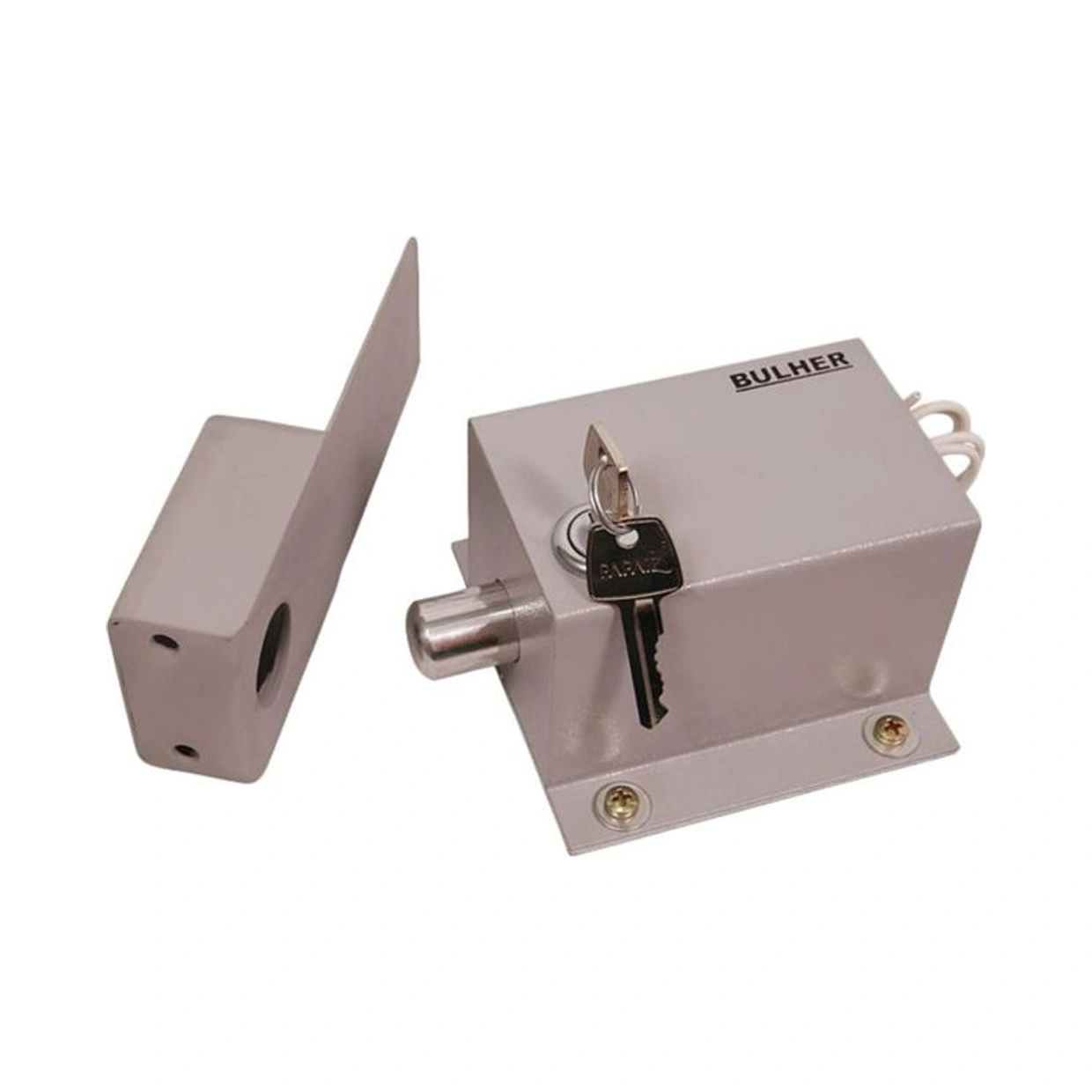 Acompanha trava, suporte da lingueta, chapa metálica, suporte tipo 'L', duas chaves e manual.