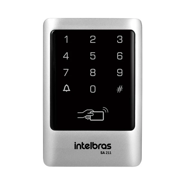 O acesso pode ser feito por senha ou por cartão de proximidade RFID 125 kHz.