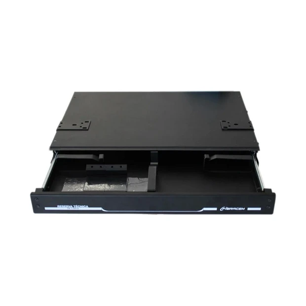 Desenvolvido para acomodação e reserva técnica de cordões e cabos. Armazena o comprimento excedente dos cordões ópticos utilizados, possibilitando uma melhor organização do cabeamento no rack. Pode ser instalado em rack padrão 19” ou 23”, apenas rotacionando a orelha de fixação. Bandejamento interno possui argolas para manter os cabos posicionados evitando o estrangulamento do mesmo. Capacidade para acomodação de 200m de cordão simplex ø2,00mm, sendo limitado duas entradas laterais com dimensões de 29x27mm.