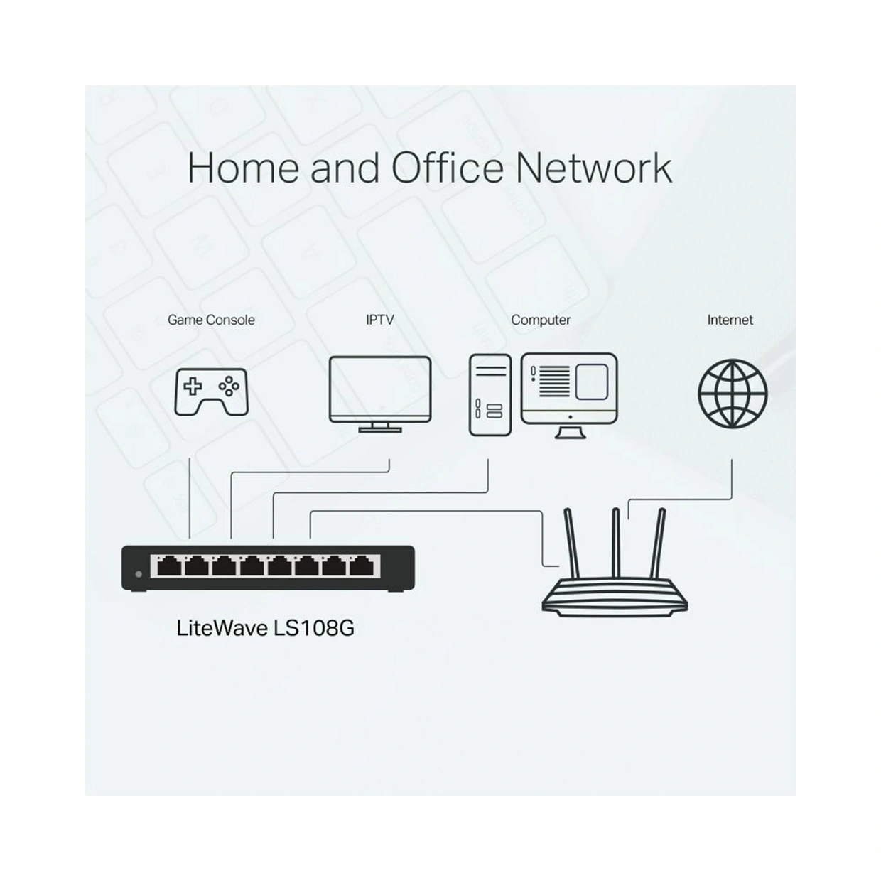 O LS108G é totalmente compatível com dispositivos em rede, como computadores, impressoras, webcams, IPTVs. Possui uma ampla variedade de cenários de aplicação sendo adequado para redes em dormitórios escolares, vigilância, residências e pequenas empresas.