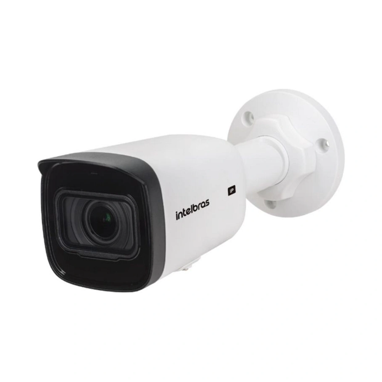 A câmera possui resolução Full HD 2MP, zoom motorizado, suporte a cartão SD, tecnologia H.265, IR de até 40m, proteção IP67 e compatibilidade com Intelbras Cloud.