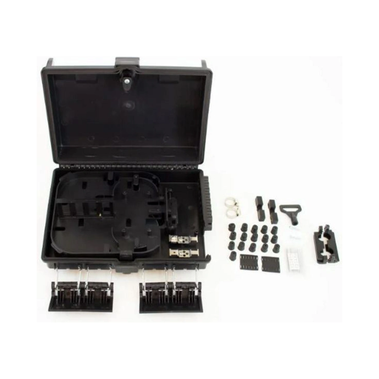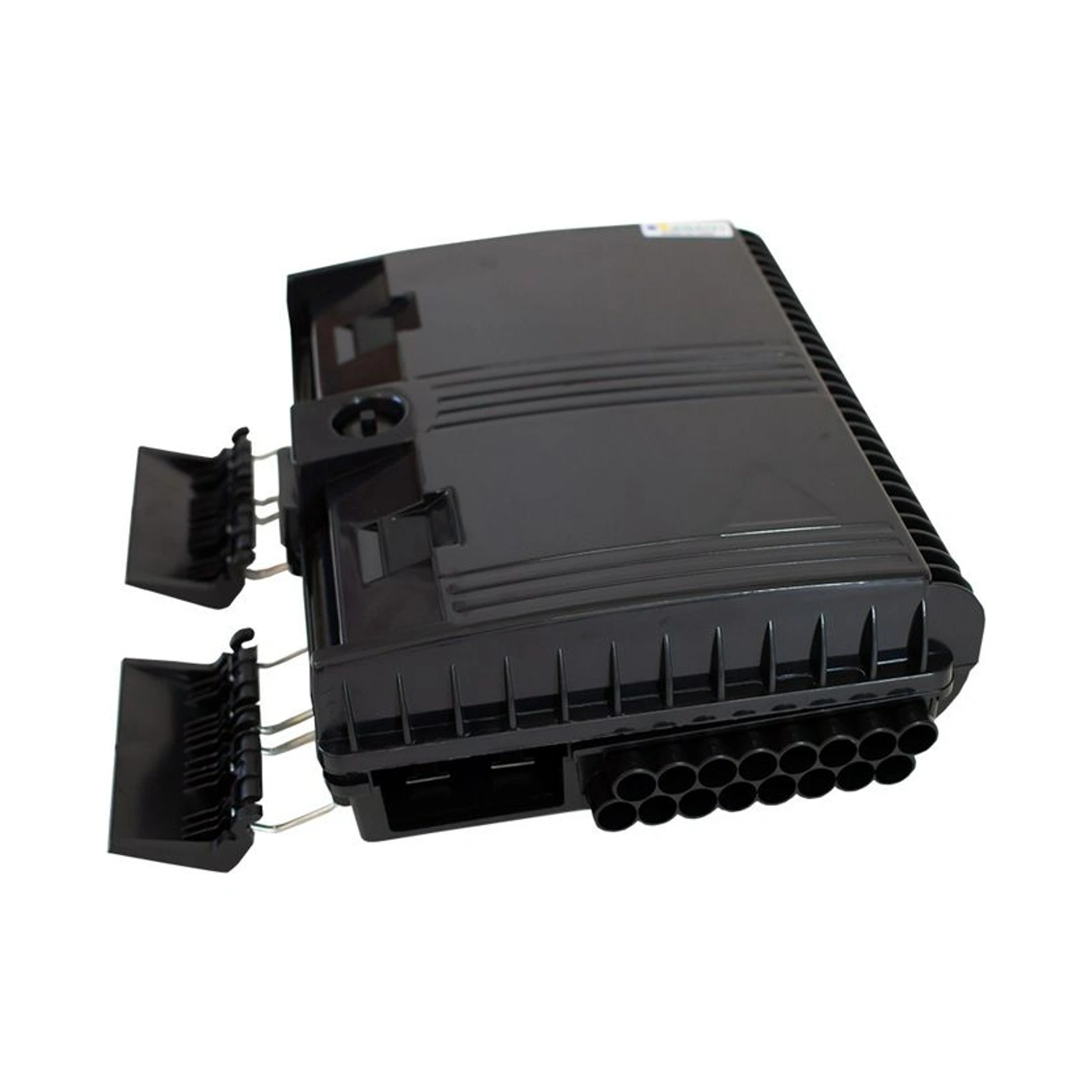 Possui estrutura selada, bandeja para cabo drop, trava de segurança e proteção IP65 contra água e poeira.