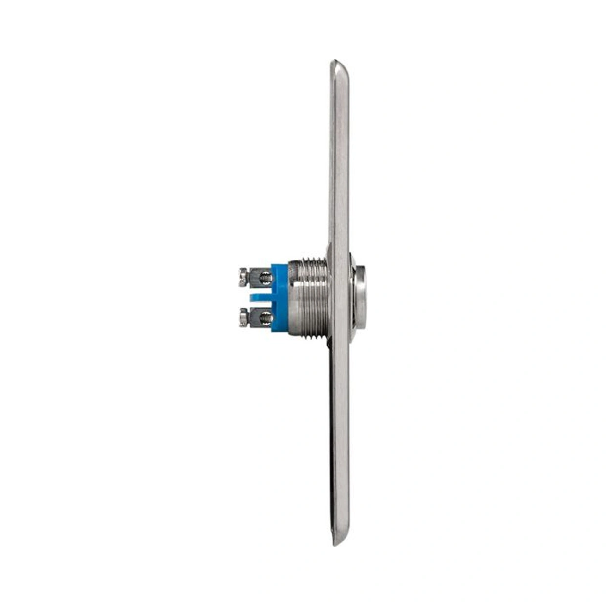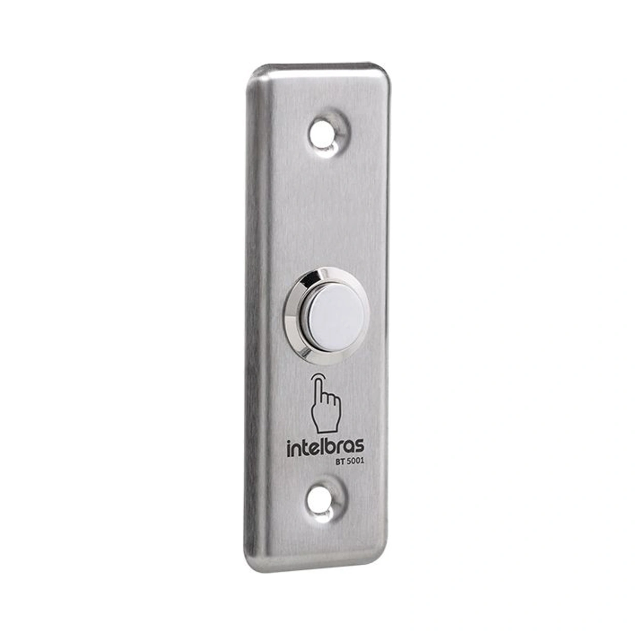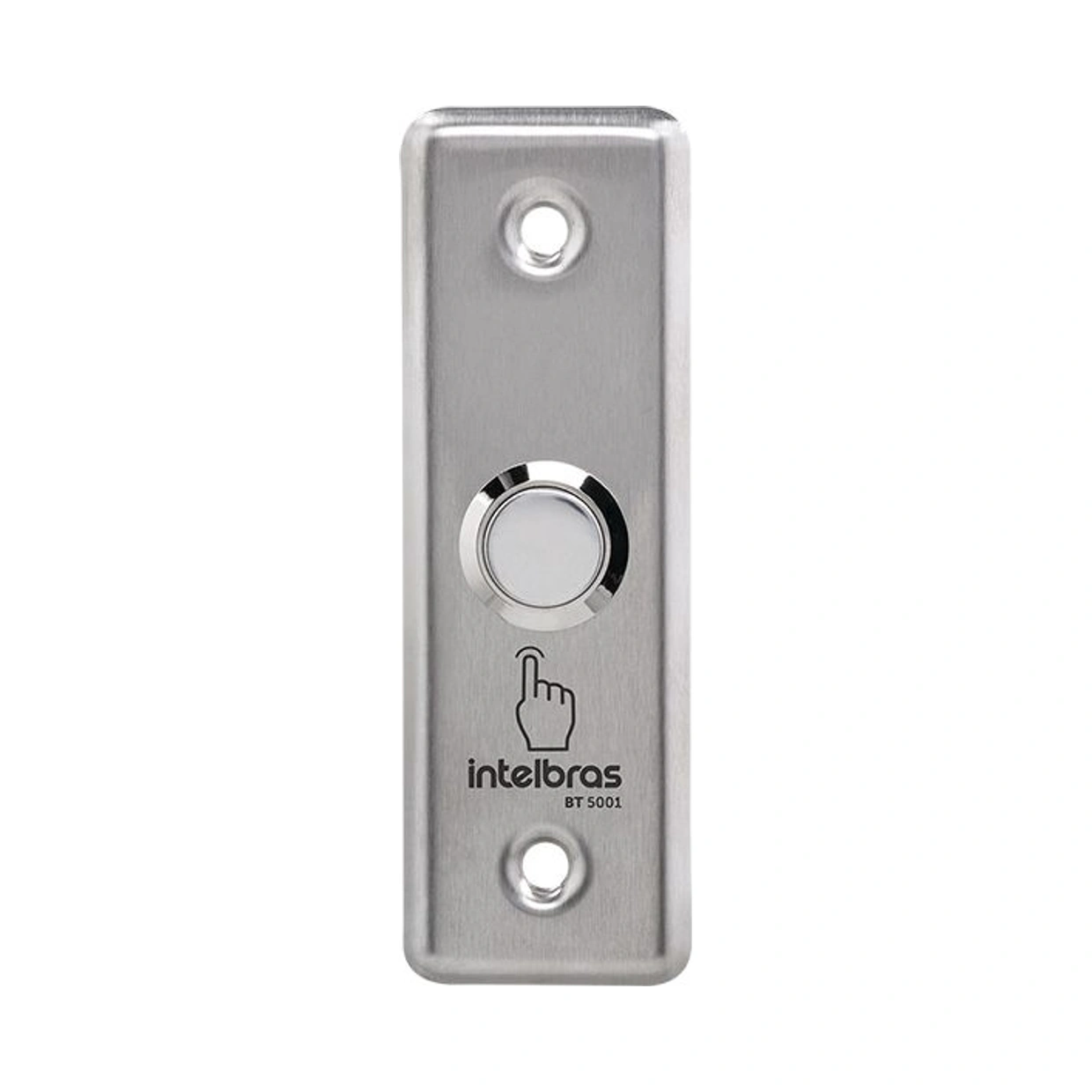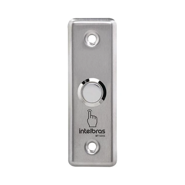 Possui botão em aço inoxidável de alta durabilidade e caixa com furos para fixação e saída dos fios.