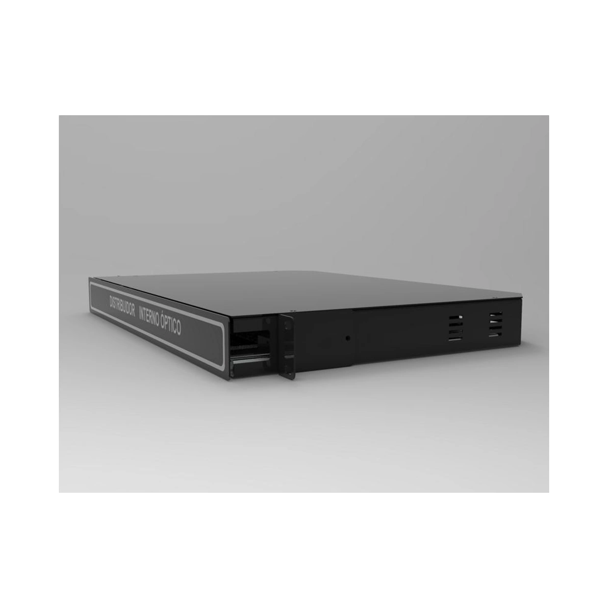 O rack de DIO é um acessório de 1U (até 24 fibras) e 2U (até 48 fibras) divididos em duas ou quatro bandejas para armazenamento das emendas ópticas e dos adaptadores para distribuição das fibras respectivamente, sendo este painel de distribuição totalmente interno. Este acessório é utilizado em rack padrão 19”, sendo possível adaptá-lo ao rack padrão 23”, fazendo uma simples inversão de suporte de fixação. Os painéis de fixação dos adaptadores ópticos são duplos e móveis, girando para esquerda e para a direita. É utilizado em emendas entre cabos e extensões ópticas, para realização de manobras com os cordões ópticos e interconexão com quipamentos. Permite a utilização de cabos tipo loose, tight, multicordão, internos ou externos com fibras monomodo ou multimodo. O acabamento é em Epóxi bege, preto ou grafite.