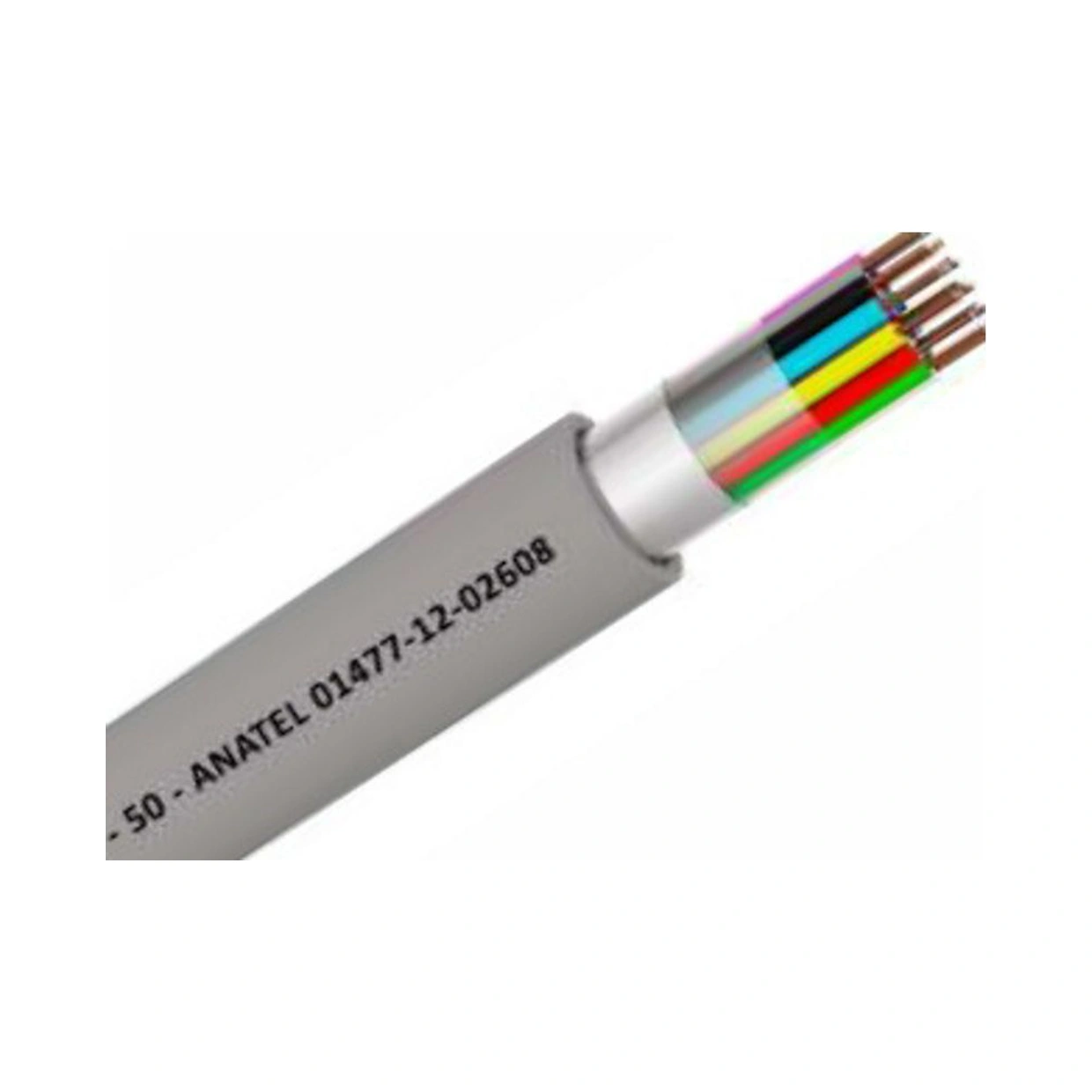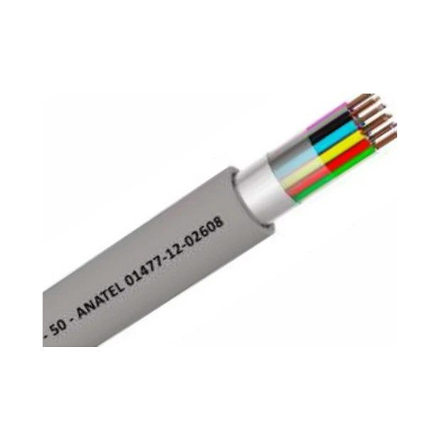 Condutores de cobre eletrolítico estanhado isolados com polietileno de alta densidade. Pares binados e agrupados blindados com fita de poliéster não higroscópica helicoidal e com fita aluminizada helicoidal, cobertura externa com PVC na cor cinza.