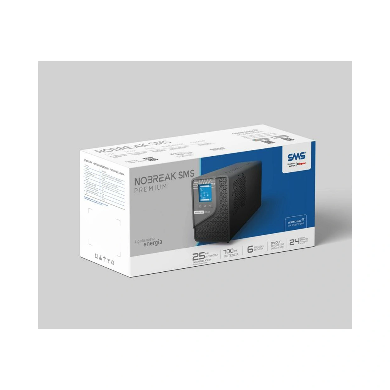 Nobreak SMS PREMIUM: Tecnologia senoidal, dedicada à equipamentos sensíveis como servidores, projetores e equipamentos médicos, além de eletrodomésticos como geladeira, frigobar, motor portão etc.