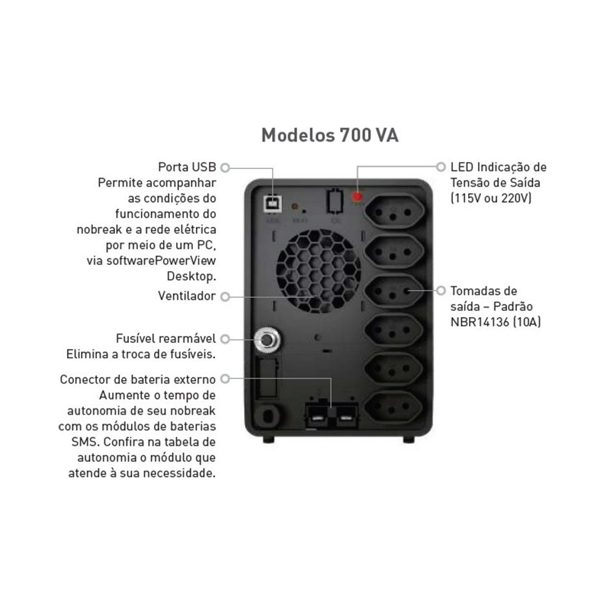 › Bivolt de entrada e saída: total flexibilidade para instalar seu nobreak de acordo com sua necessidade de maneira simples e rápida.