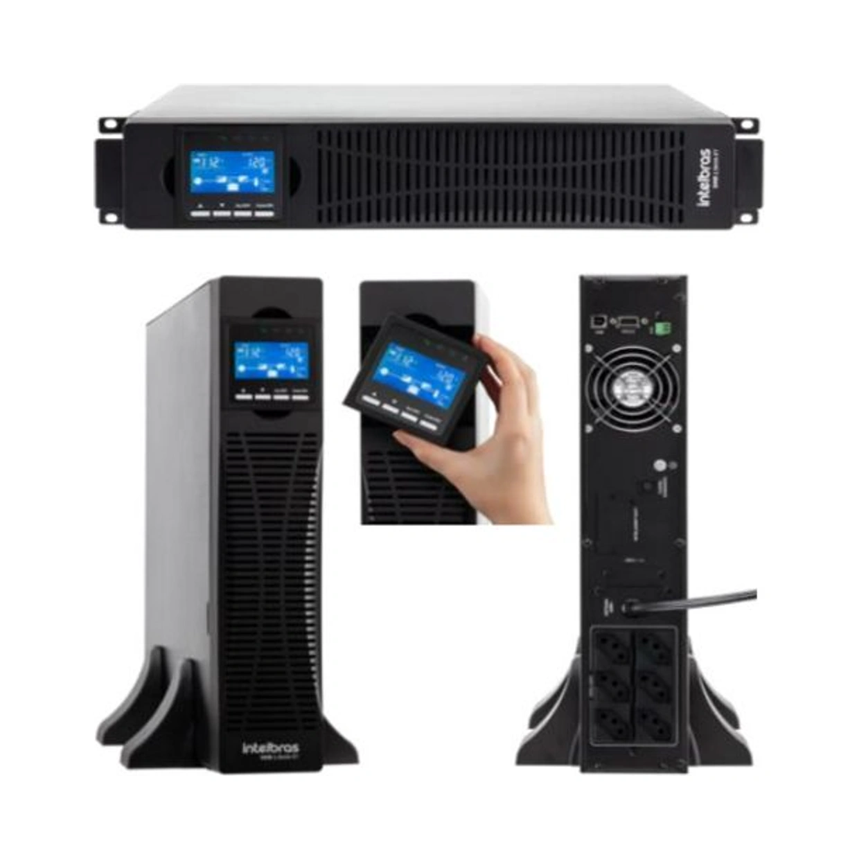 torre ou rack. Possui display LCD intuitivo e ajustável, hot swap, Bypass Automático, Modo Eco e é compatível com o Módulo de Bateria MB 0609 36V RT.