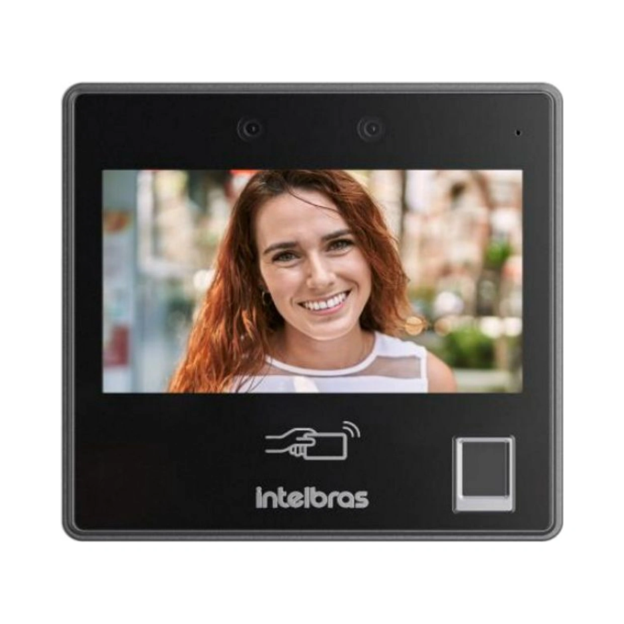 O controlador permite autenticação por reconhecimento facial, biometria digital, cartão RFID MF 13,56 MHz, QR Code e senha.