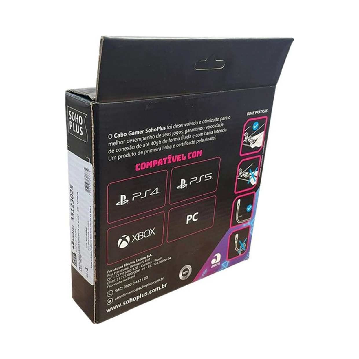 PATCH CORD CABO GAMER SOHOPLUS CAT6 1.8M - PRETO