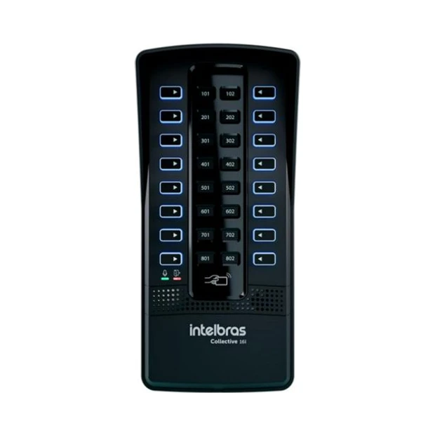 O collective 16i é um porteiro eletrônico analógico e uma central de 16 ramais ao mesmo tempo, perfeito para condomínios de pequeno e médio porte. Permite chamadas diretas e sigilosas entre os