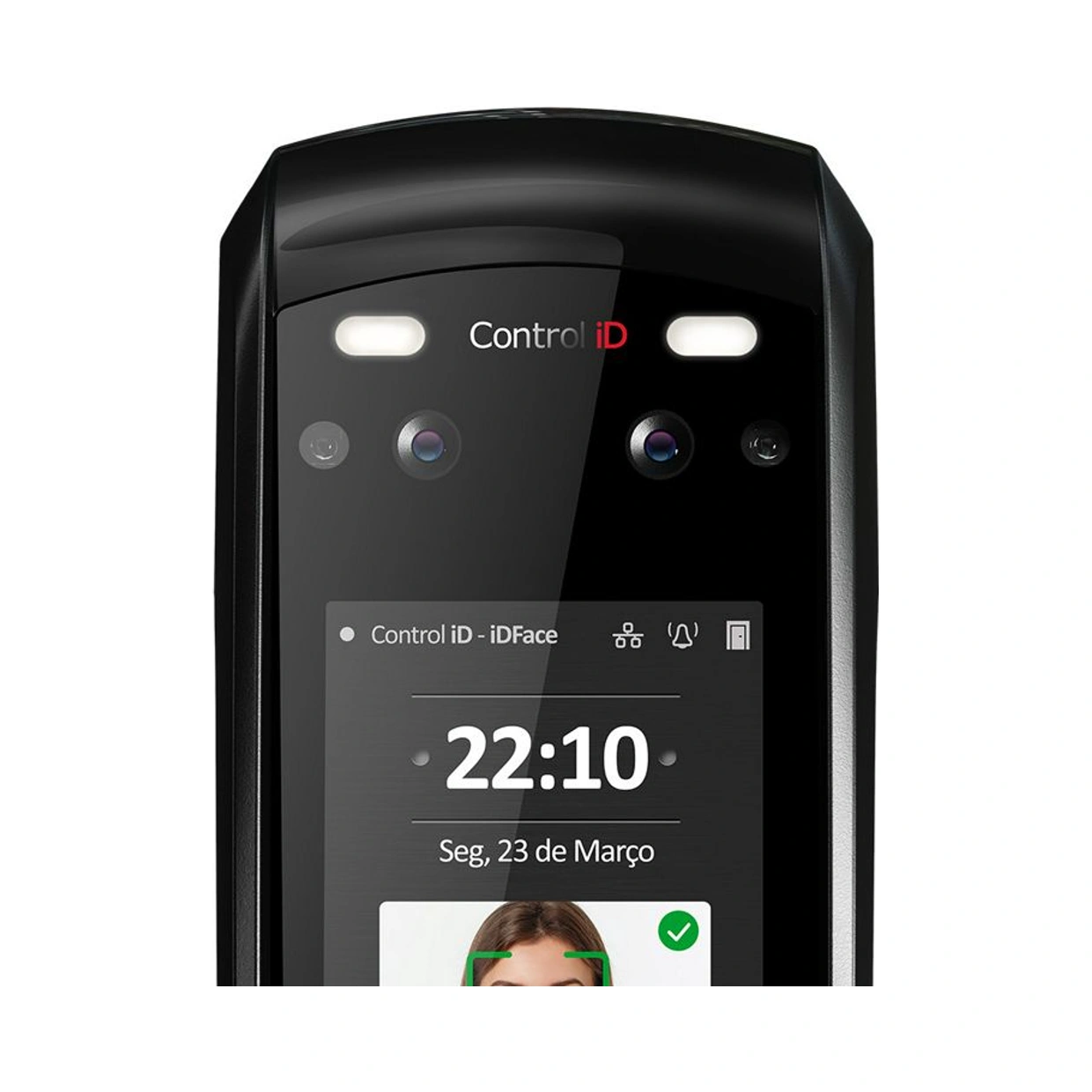 Além disso, o dispositivo apresenta um display touchscreen de 3,5” e um software web embarcado que facilitam a gestão das regras de acesso e visualização de relatórios.
