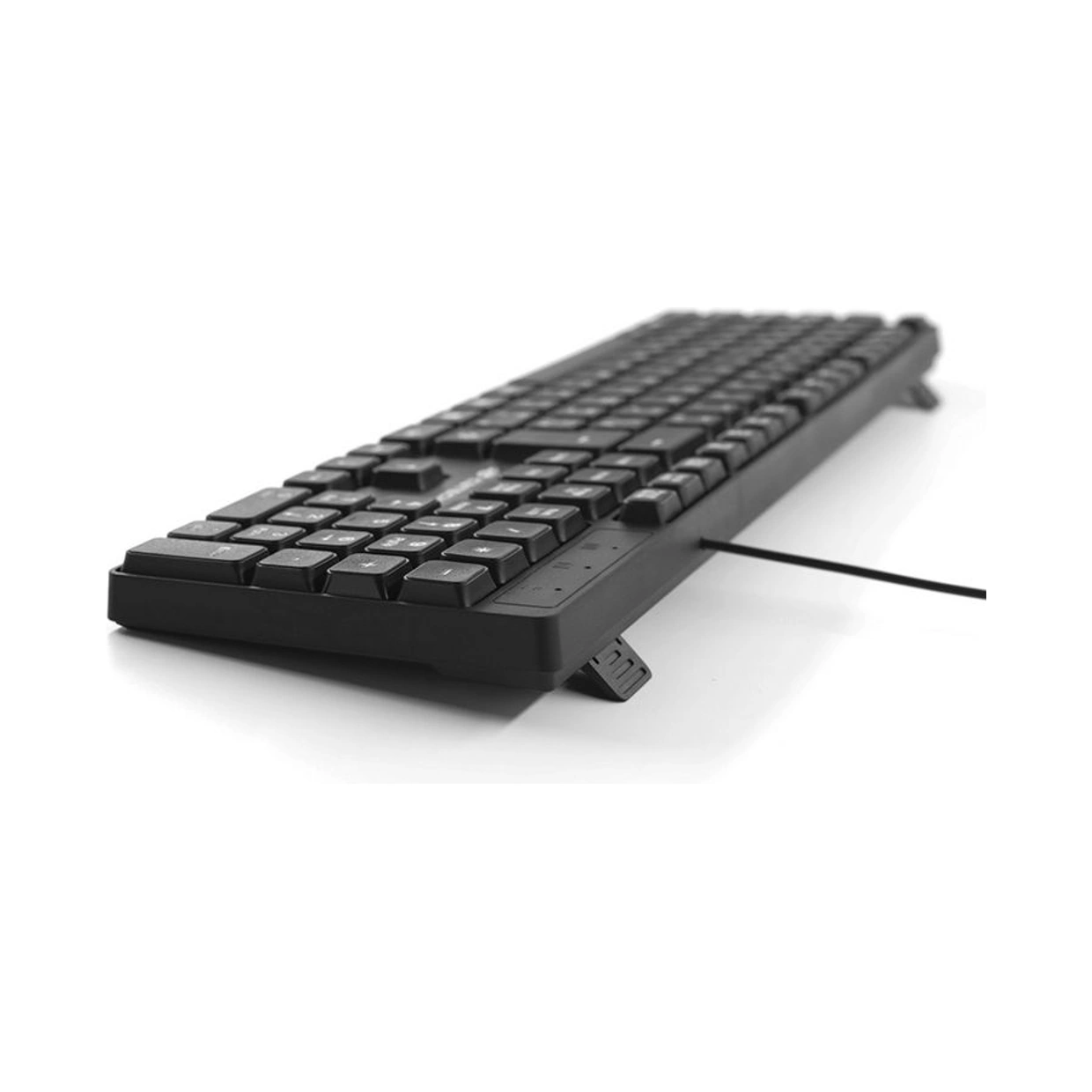 O teclado possui 107 teclas, incluindo teclas multimídia.
