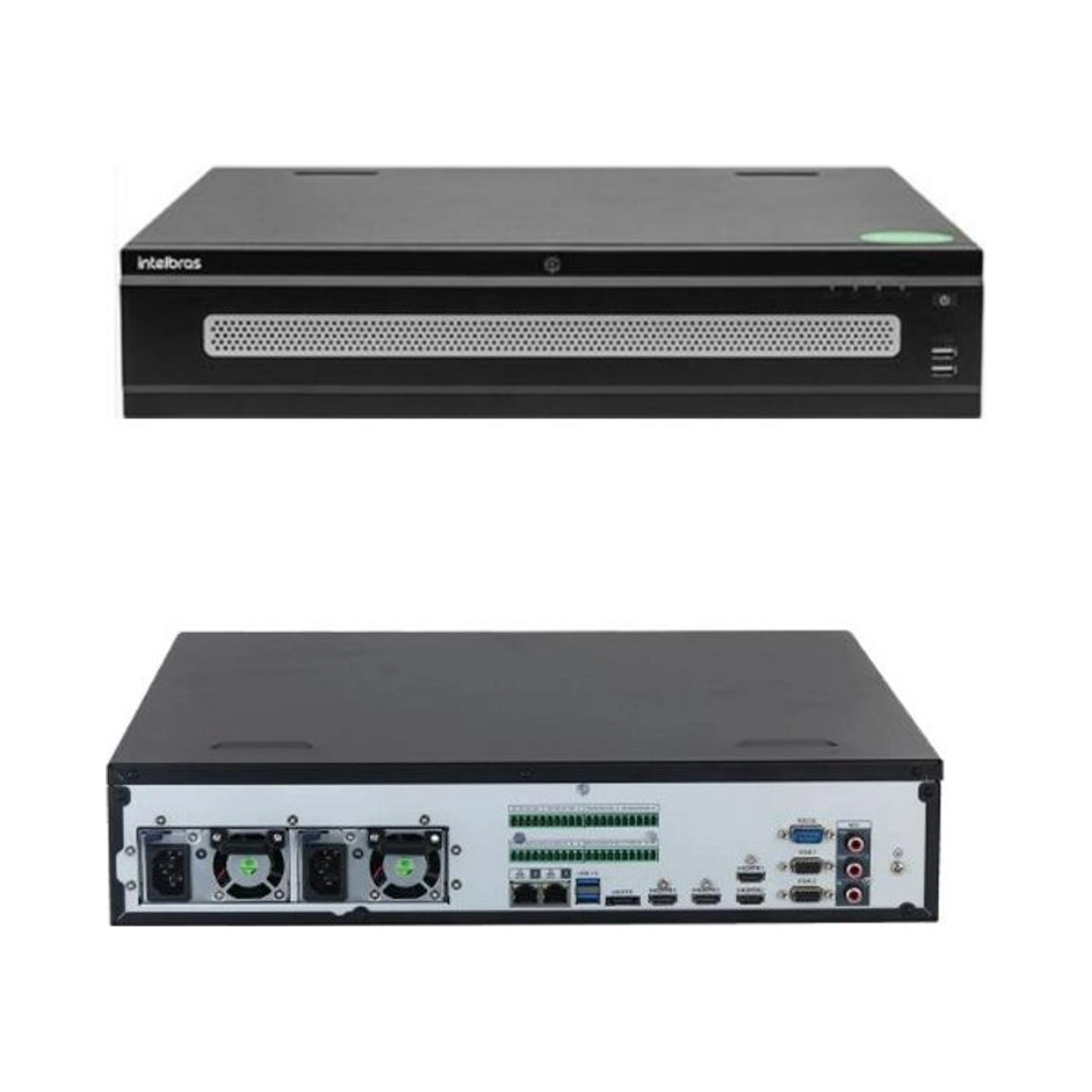 O NVR suporta até 8 HDs de 16 TB cada, totalizando até 128 TB de armazenamento.