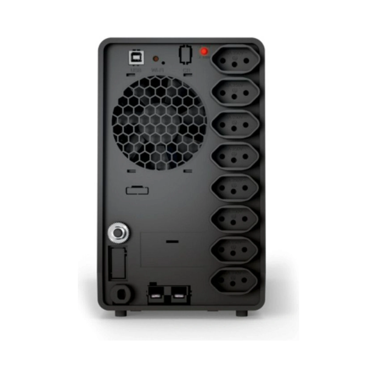 Conexão de saída: 8 tomadas NBR 14136 (6 tomadas de 10A + 2 tomadas de 20A)
