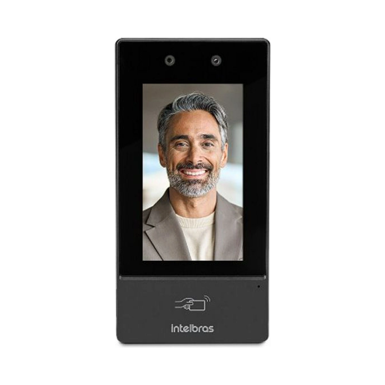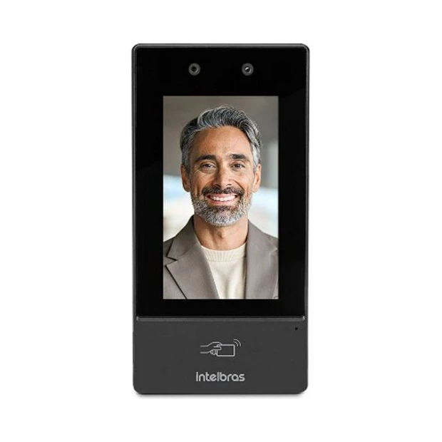 facial, cartão RFID MF 13,56 MHz, QR Code e senha.