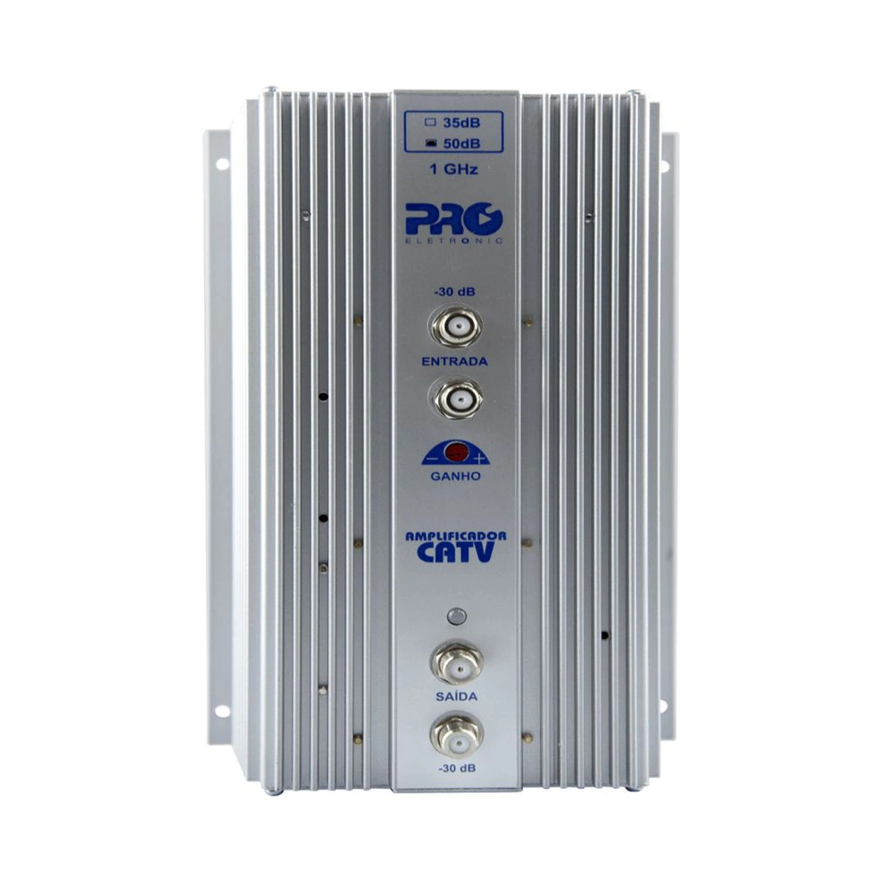 Ele é ideal para amplificação de sinais VHF, UHF e CATV em sistemas de TV a cabo.