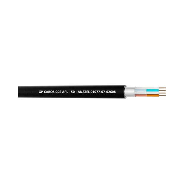 CABO TELEFÔNICO CCE APL (DE 2 A 6 PARES) CONSTRUÇÃO: CONDUTORES DE COBRE ELETROLÍTICO, ISOLADOS, COM POLIETILENO, AGRUPADOS E PROTEGIDOS POR CAPA APL. APLICAÇÃO: INDICADO PARA INSTALAÇÕES EM REDES AÉREAS OU SUBTERRÂNEAS EM DUTOS. NORMA APLICÁVEL: SDT 224-1205-20. NBR: 10484.